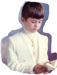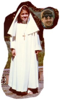 Mientras Aren trataba de engañar al cura haciendole creer que leia el libro que le daba, Wife Disfrutaba plenamente de su Primera Comunión.......Nó hay más que fijarse un pelo en las afotos, en realidad creo que lo que más le gustó fué la tarta.